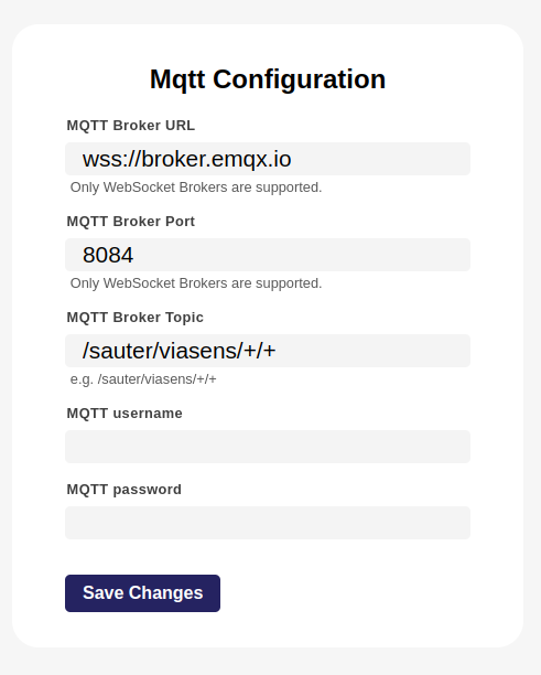 To connect your broker to the dashboard, navigate to MQTT Configuration and enter your MQTT data.
