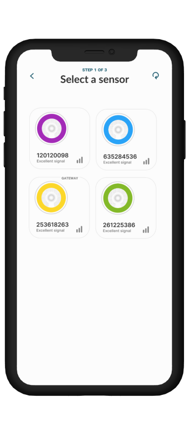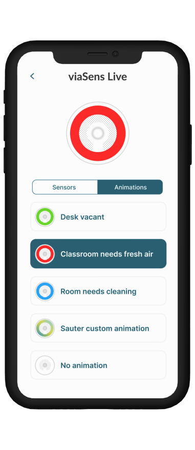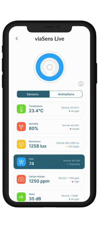 Once you're connected to the device, all current sensor values are displayed. When certain sensor value is selected, appropriate colour scheme is displayed on the sensor's LED ring.